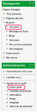 Pero si lo que queremos es modificar alguno de los valores, lo haremos desde el Menú de administración entramos en Editar perfil.