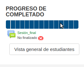 Esta boque de progreso es también una herramienta del tutor para la evaluación final, puesto que el tutor puede entrar en la "Vista general de estudiantes: